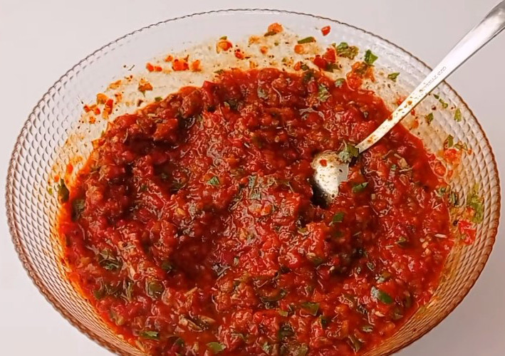 Malzemeler: 6 adet domates 2 adet kırmızı kapya biber 2 adet kuru soğan Yarım demet maydanoz 2 diş sarımsak