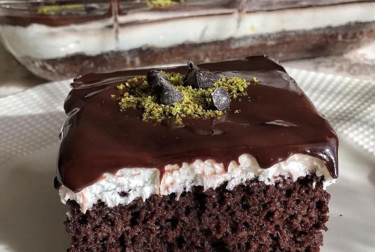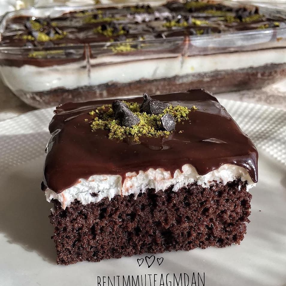 Yumurta ve şekeri köpürünceye kadar çırpın. Suyu ekleyip tekrar cırpın. Kakao un kabartma tozu vanilyayı eleyerek karışıma ekleyin karıstırın. Fırın kabınızı yaglayın karışımı dökün. 180 derecelik fırında pişirin. Pişen kekin üstüne sütü bir kaşık yardımıyla eşit bir şekilde dökün. Keki soğumaya bırakın. Krem santiyi soğuk sütle çırpın buz dolabına kaldırın. Çikolata sosunu üstünde ki tarife göre pişirip soğumaya bırakın(soguturken kabuklanmaması için arada karıstırın) Kek soğuduktan sonra krem santiyi eşit bir şekilde kekin üstüne yayın. Daha sonra soğuyan çikolata sosunu krem şantinin üstüne dökün. Buz dolabına kaldırın dinlendikten sonra dilimleyip servis edebilirsiniz.