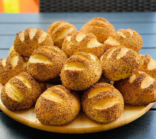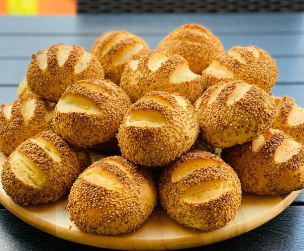 Yapılışı: Un hariç malzemelerin hepsini geniş bir kaba alıyoruz maya eriyene kadar karıştırıyoruz daha sonra yavaş yavaş un ilave ederek hamurumuzu yoğuruyoruz yumuşak bir hamur elde ediyoruz üzeni temiz bir bezle kapatıp 40-45 dk mayalandırıyoruz mayalanan hamurdan mandalina büyüklüğünde parçalar alıyoruz elimizde hafiften açıp içine kaşar peyniri koyup elimizde yuvarlıyoruz pekmezli suya bandırıp susama buluyoruz tepsimize diziyoruz üzerini çok derin olmayacak şekilde bıçakla çizgiler atıyoruz 20 dk tepsi mayası yaptıktan sonra 190 derece fırında üzeri kızarana kadar pişiriyoruz.