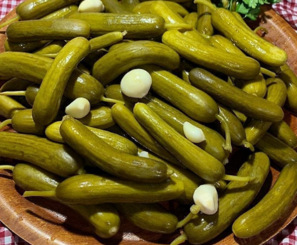 1 litrelik kavanoz için malzemeler Salatalık 4-5 diş sarımsak 1 çay bardağı sirke 1 çorba kaşığı kaya tuzu 1 küp şeker Sıcak su