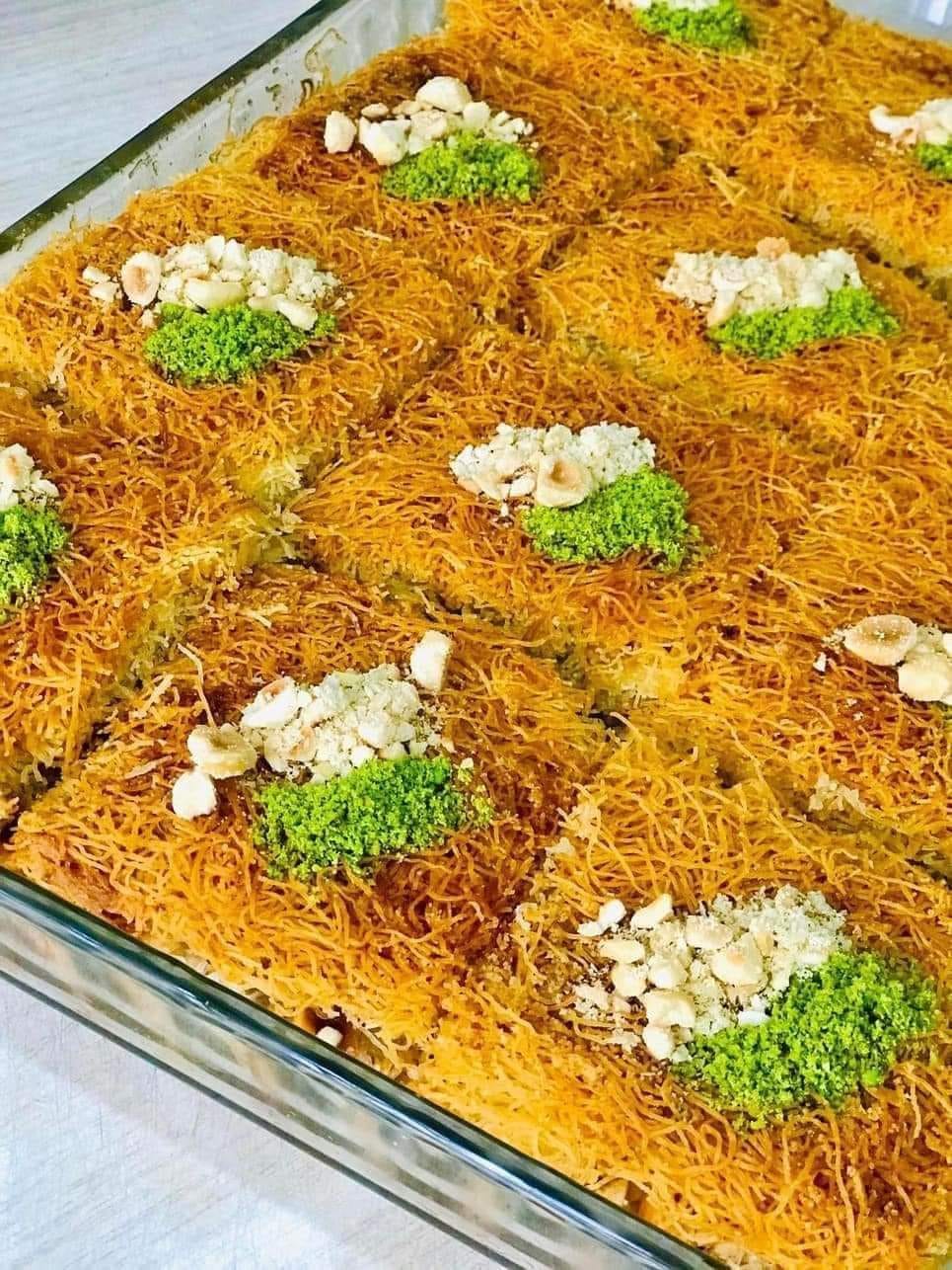 ✅ Fırından çıkarılan kadayıf sıcakken üzerinde soğutulan şerbet eklenir ve şerbetin çekmesi için yaklaşık 2.3 saat kadar bekletildikten üzeri antepfıstığı, kaymak ya da dondurma ile servis edelim.