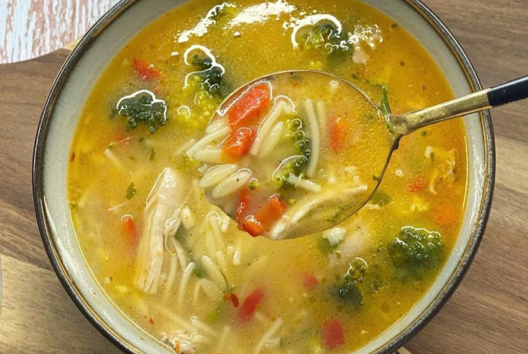 Malzemeler: 1 tavuk but 1 kapya biber (Küçük küçük doğranmış) 1 adet soğan 2-3 diş sarımsak 1 çorba kasesi küçük küçük doğranmış brokoli 1 çay bardağı tel şehriye 2 yemek kaşığı tereyağ 1,5 yemek kaşığı un Yaklaşık 6 su bardağı tavuk suyu Tuz, karabiber, pul biber ya da kırmızı biber Yarım limonun suyu Maydanoz