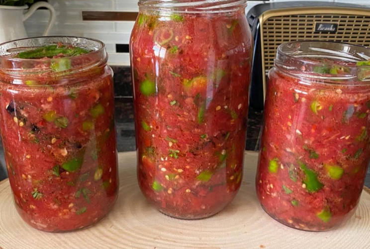 Malzemeler 2 kilo domates 1 avuç acı biber 1 deste yeşil biber 1 çay bardağı zeytinyağı 1 çay bardağı üzüm sirkesi 2 yemek kaşığı iri tuz Küçük bir baş sarımsak Yarım demet maydanoz