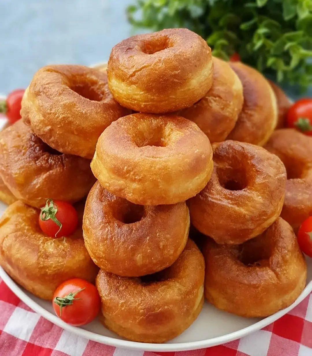 Malzemeler; 1,5 su bardağı ılık süt 1 su bardağı ılık su 1 paket toz maya 1 tatlı kaşığı tuz 1 tatlı(silme) kaşığı toz şeker Aldığı kadar un(4,5-5 su bardağı) Kızarmak için; Sıvı yağ