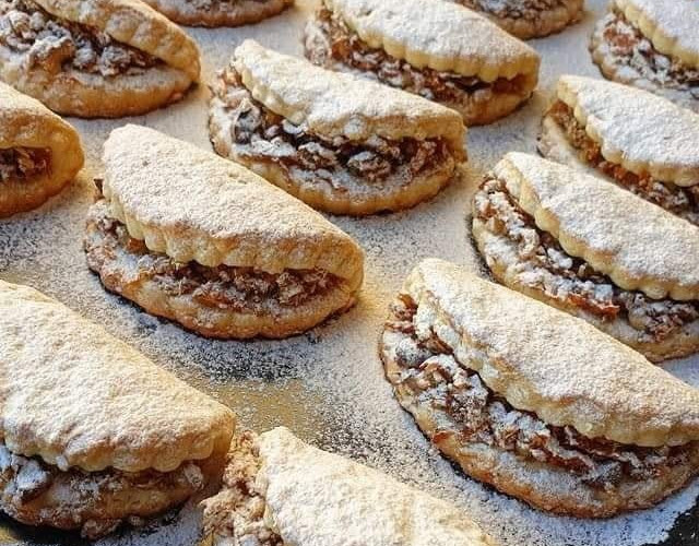 175 derece önce den ısıtılmis fırında üzeri hafif kızarana kadar pişirin. Servis etmeden önce bir süzgeç yardımı ile üzerine pudra şekeri serpiştirin