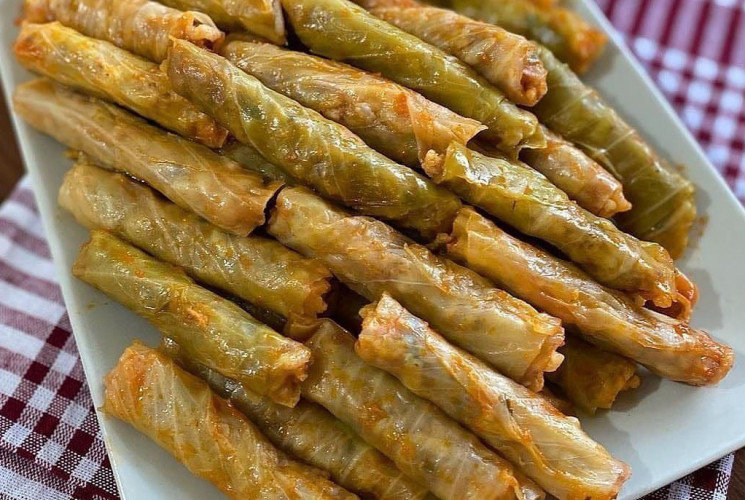 Yapılışı: Kıymalı harç için,bütün malzemeleri bir araya getirin ve güzelce yoğurun.Bu noktada daha yumuşak bir iç olmasını isterseniz içine 2-3 yemek kaşığı su ilave edebilirsiniz. Lahanayı görseldeki gibi kesin ve kaynayan tuzlu suyun içine atarak yaklaşık beş dakika kaynatın. Süzgeçte fazla suyunu süzdürdüğünüz lahana yaprakları artık sarılmak için hazır. Yaprağın içine harcı alıp sıkı sıkı sarın. Tencerenizin zeminini kullanmadığınız lahana yaprakları ile kaplayın ki lahananız dip tutmasın. Sarmış olduğunuz tüm lahanaları sırt sırta dizin . Ayrı bır sos tenceresinde 2 yemek kaşığı sıvıyağ ile bir yemek kaşığı salçayı kavurun. Bir miktar su ile açın ,içine tuz ve çay kaşığının ucuyla şeker ekleyin ve lahanaların üzerine dökün. Kapağını kapatarak kısık ateşte sarmalarınızı pişirin.