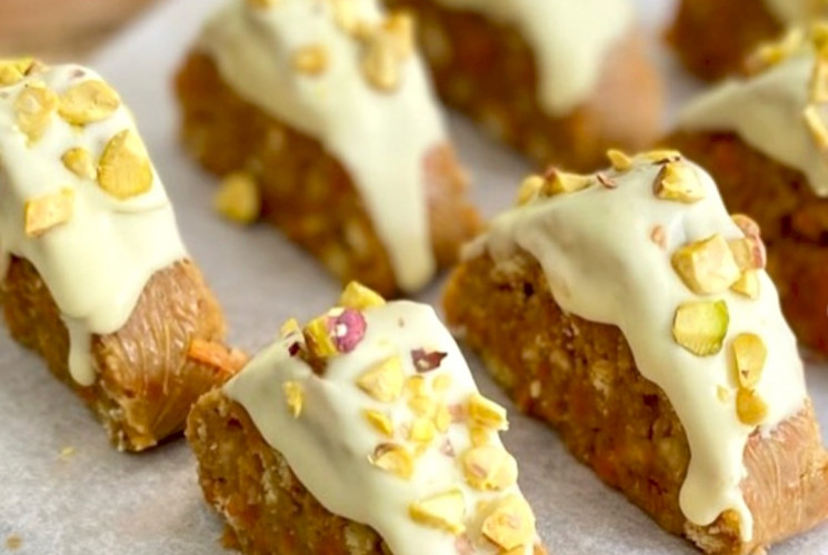 Malzemeler 1 paket bisküvi 3-4 adet havuç 4 yemek kaşığı şeker 2-3 yemek kaşığı Hindistan cevizi 2 yemek kaşığı tereyağ Yarım çay bardağı ceviz Islatmak için; Yarım çay bardağı (süt, meyve suyu, su vs.) Üzeri için; Beyaz çikolata