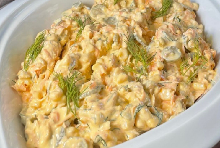 Yapılışı: Havuçları rendeleyin ve zeytinyağında 5 dk kadar kavurun, çok fazla yumuşamasını beklemeyelim. Soğumaya bırakalım. Yoğurt, mayonez, sarımsak, tuz ve dereotu bir kasede güzelce karıştırın. Kornişonları küçük küçük doğrayın, diğer tüm malzemeleri ve soğuyan havuçları ekleyip karıştırın.