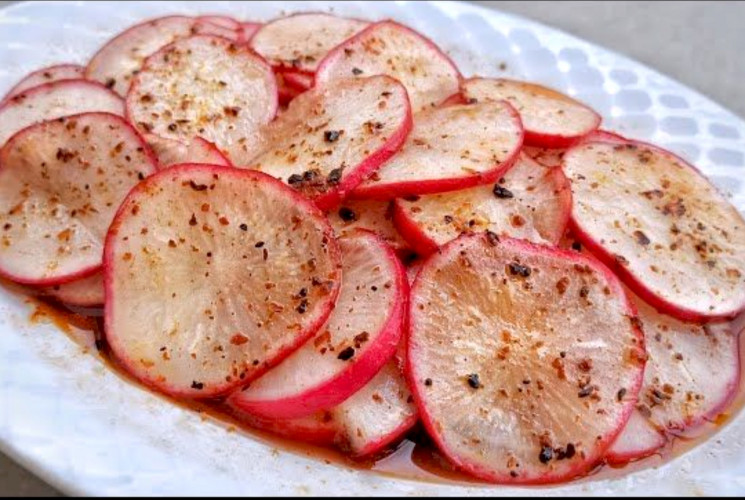 Malzemeler: 4 adet küçük kırmızı turp (Kabukları acı ise soyabilirsiniz) 1 adet limon 1 yemek kaşığı nar ekşisi 3 yemek kaşığı zeytinyağı 1 çay kaşığı isot 1 çay kaşığı pul biber 1 çay kaşığı sumak Yarım çay kaşığı tuz