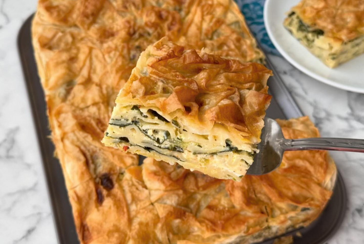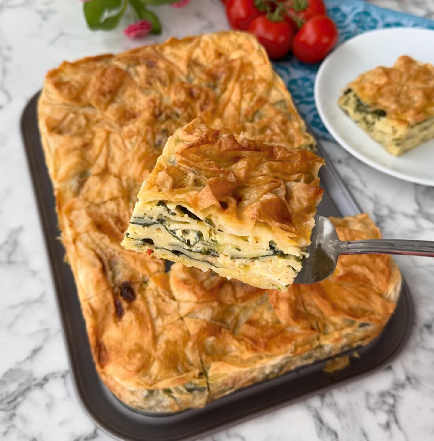 Yapılışı: Makarnayı hafif diri kalacak şekilde haşlayıp süzün. İrice doğranmış ıspanağın üzerine döküp karıştırın. Kalan malzemeleri ekleyip karıştırın. Yufkanın birini dikdörtgen kek kalıbına buruşturarak serin. Kenarlarını kalıptan sarkıtın. Ben kelepçeli kalıp kullandım. Fırın tepsisinde de olur. Makarnalı harcı döküp yayın. Üzerine 2. Yufkayı serin. Bir yumurta sarısı, 2 kaşık süt ve 2 kaşık sıvıyağı karıştırıp üzerine sürün. 180° lik fırında kızarana kadar pişirin. Yarım saat kadar dinlendirip sonra dilimleyin.
