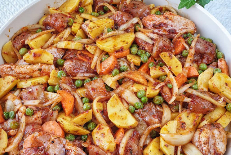 Fırında Sebze Yatağında Baharatlı Tavuk Tarifi