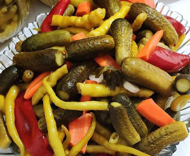 Malzemeler: 5 litre bidon için: 2 kg kornişon salatalık 2 kg kıl biber 4 beş adet havuç 2 -3 adet kırmızı biber 2 adet olgunlaşmamış domates Yarım bağ maydanoz 1 baş sarımsak Çeşidi damak tadınıza göre arttırabilirsiniz