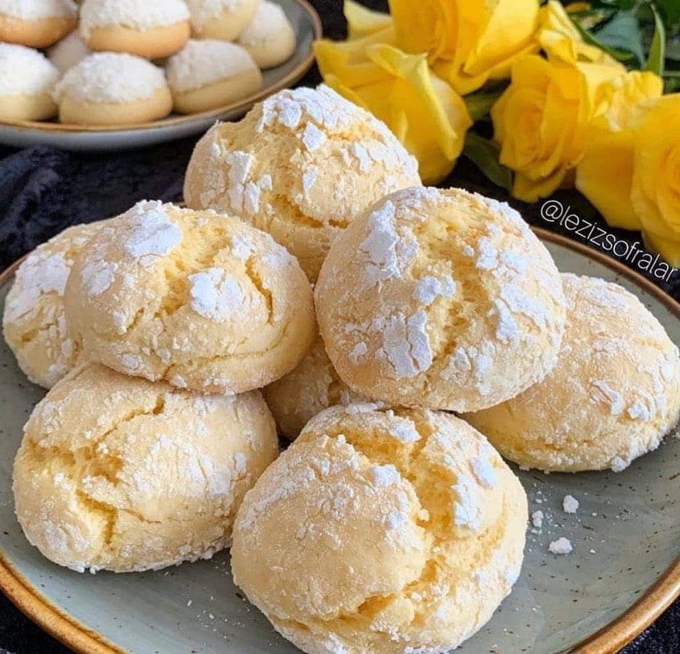 Malzemeler: 1 adet limonun suyu 1 adet limonun rendelenmiş kabuğu 1 adet yumurta ½ su bardağı sıvı yağ 1 su bardağı toz şeker 1 paket kabartma tozu 1 paket vanilya Kurabiyeleri bulamak için pudra şekeri Yaklaşık 2 – 2,5 su bardağı un (kontrollü eklenecek)