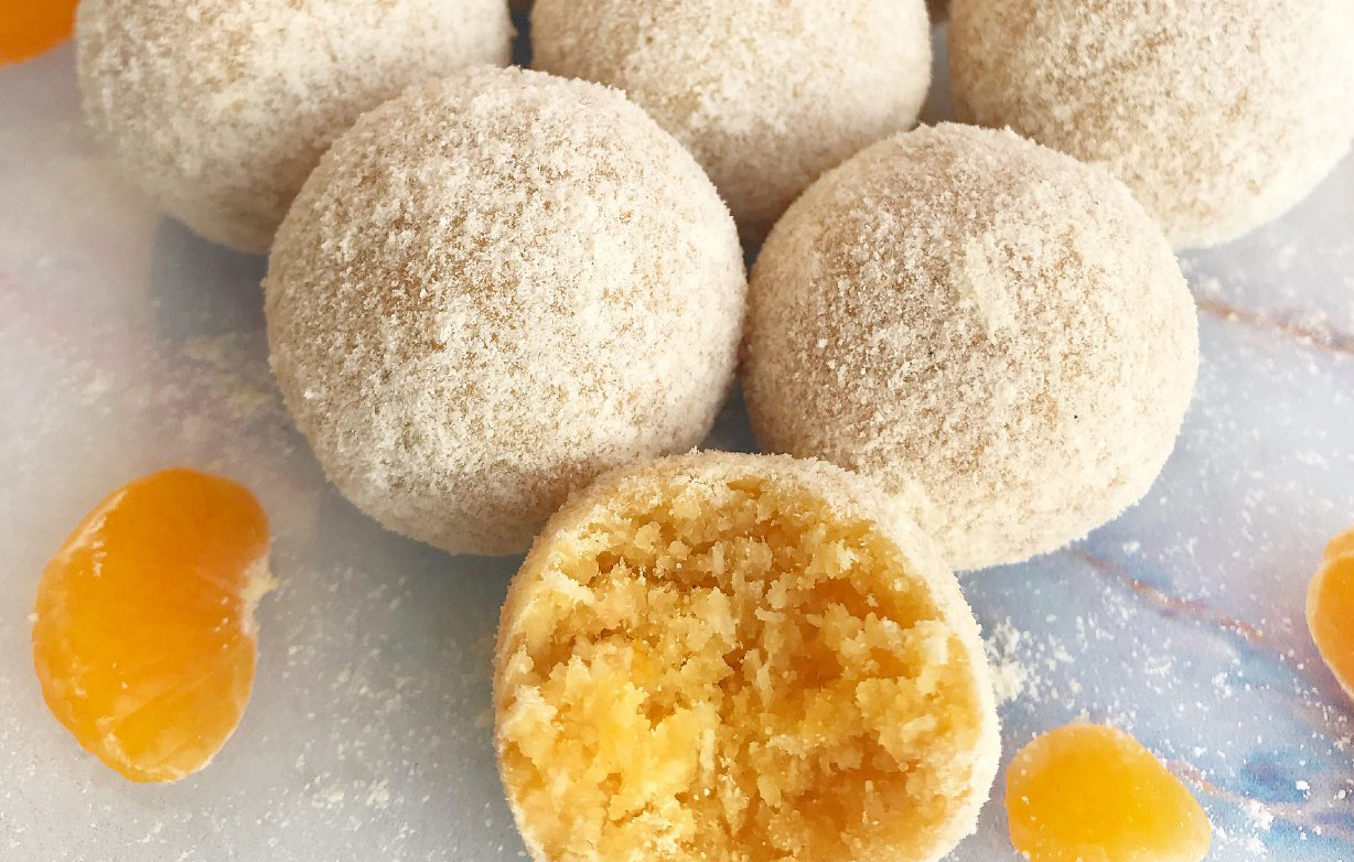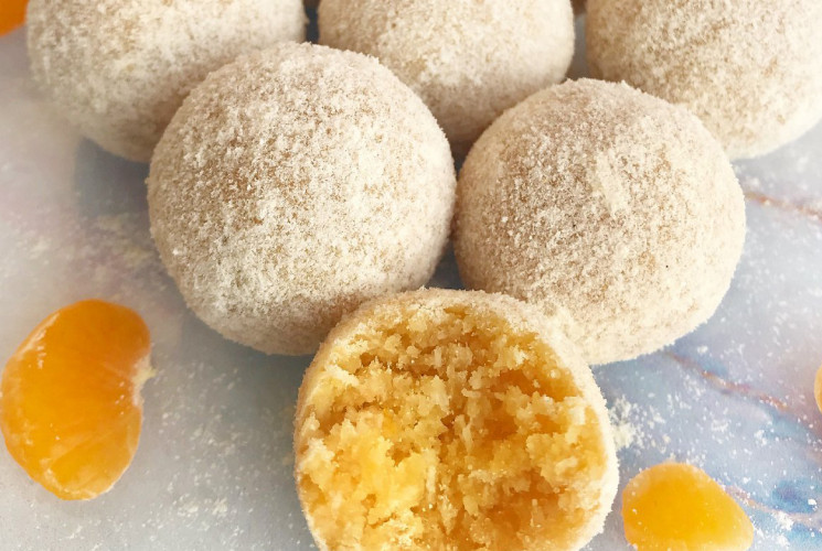 Malzemeler 1,5 su bardağı badem unu (yulaf unu, fındık unu veya Hindistan cevizi unu da kullanabilirsiniz) 1 adet mandalina suyu 2 yemek kaşığı hindistan cevizi yağı 3 yemek kaşığı bal 2 yemek kaşığı hindistan cevizi tozu 1 kase hindistan cevizi unu (bulamak için)