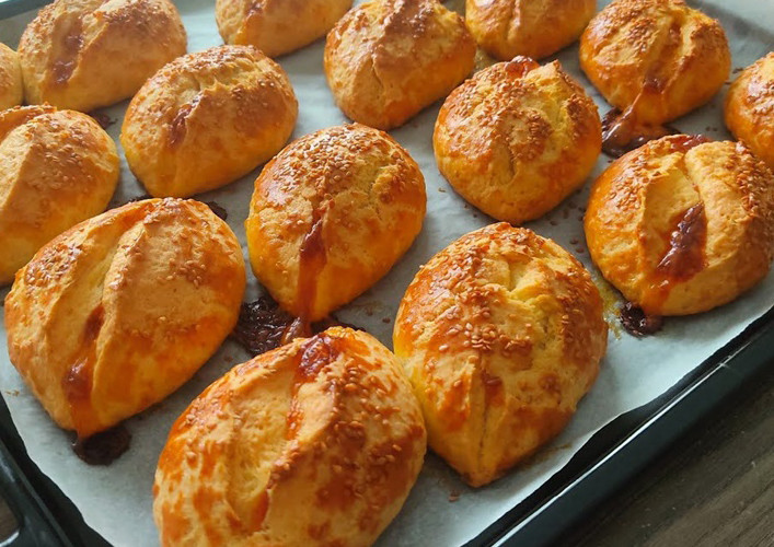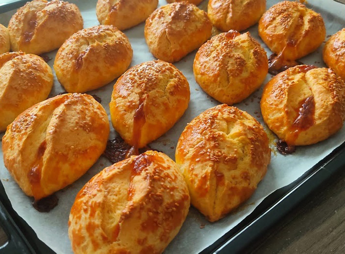 Malzemeler: 2 yumurta (birinin sarısı üzerine) 2 su bardağı yoğurt 1 su bardağı sıvıyağ 1 tatlı kaşığı tuz 2 paket kabartma tozu 5 su bardağı un ( kontrollü ekleyin unun kalitesine göre miktarı değişebilir)