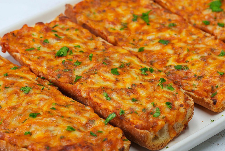 Malzemeler: 1 adet baget ekmeği 1 yemek kaşığı Teremyağ 7-8 yemek kaşığı domates püresi 150 gr kaşar peyniri 1 tutam maydanoz 1 diş sarımsak 1 çay kaşığı kekik Yarım çay kaşığı tuz Yarım çay kaşığı karabiber