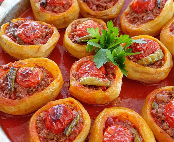 Malzemeler: 7 adet patates 200 gr kıyma 1 adet soğan 1 adet domates 1 yeşil biber 3 diş sarımsak 1 tatlı kaşığı salça Çeyrek demet maydanoz Pul biber, karabiber, tuz