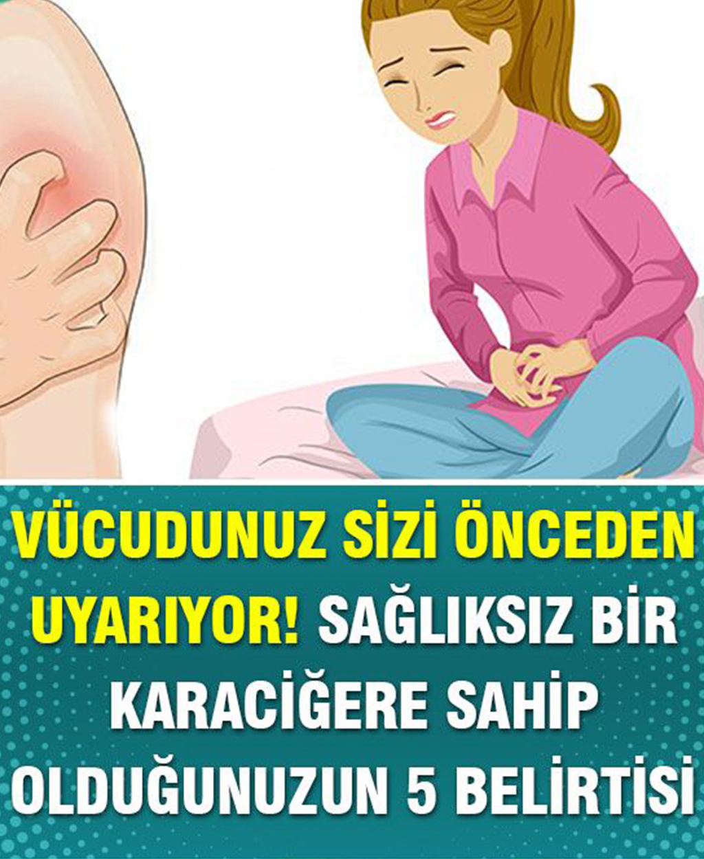 Sağlıksız Bir Karaciğere Sahip Olduğunuzun 5 Belirtisi. 1- Kaşıntı Sık sık kaşınanlardansanız bunun bir işareti de karaciğerinizde sorun olduğu olabilir. Karaciğeriniz hasar gördüğünde bundan safra kesesi de etkilenir. Safra kanalınız tıkandığında bu kan akışını da etkiler. Health 24’ten aktarılanlara göre de bu yüzden sık sık kaşınıyor olabilirmişsiniz.