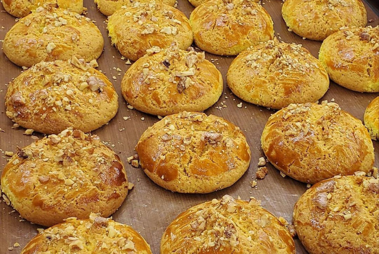 Malzemeler: 125 Gr margarin veya tereyağı 3 yumurta (birinin sarısını üzerine ayırın) 1 çay bardağı sıvıyag 1 çay bardağı yoğurt 1 buçuk su bardağı toz şeker 1 Paket kabartma tozu 1 paket vanilya 1 çay kaşığı zerdeçal 1 portakal kabuğu rendesi 6 su bardağı un ( bardak ölçüsü 200 ml klâsik su bardağı )