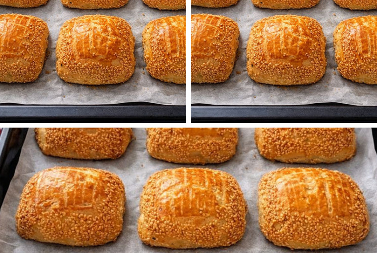 Hamur için: 1 su bardağı ılık süt 1 su bardağı ılık su 1 paket instant maya (10 g) 1 yemek kaşığı şeker 1 tatlı kaşığı tuz 1 çay bardağı sıvı yağ 5–6 su bardağı un (kontrollü) Üzeri için: 1 adet yumurta sarısı 2 yemek kaşığı süt Bol susam