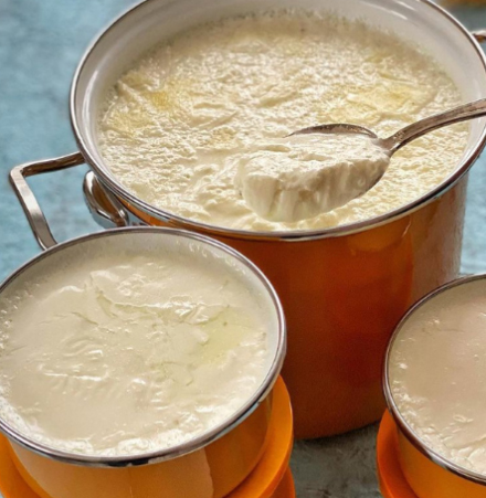 2 litre süte 1 tepeleme yemek kaşığı yoğurt olacak şekilde mayalık yoğurdu bir kaseye koyup oda sıcaklığına gelmesini sağlayın. Sütü bir tencereye koyup kaynamaya bırakın. Gözle görülür şekilde buharlar çıkmaya başladığında süre tutmaya başlayın ve mümkünse hiç durmadan karıştırın. Arada bir kepçeyle sütü bir karış mesafeye kaldırıp tencereye dökerek havalanmasını ve daha çok buharlaşmasını sağlayın. 15-20 dakika kaynadıktan sonra sütü soğumaya bırakın. Mümkünse soğurken de karıştırmaya devam edin. Fırını 45 dereceye ayarlayın.