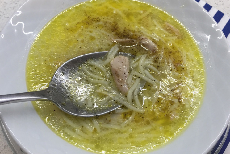 Soğanı iri parçalar halinde kesin. Bol suda yıkadığınız tavuk göğsünü ve budu soğanlarla birlikte tencereye aktarın. Suyu ekleyin ve orta ateşte 30 dakika kadar kaynatın. Pişen tavuk etlerini servis tabağına alın ve soğuduktan sonra kemiklerini ayıklayın. Tavuk etlerini küçük parçalar halinde ditin. Ayrı bir tavada tereyağını eritin. Unu kokusu çıkıp, renk alana kadar kavurun. Tuz ve karabiberi ekleyin. Hazırladığınız unlu terbiye karışımını tavuk suyuna aktarın ve çorbanın pürüzsüz olması için el blenderından geçirin. Parçaladığınız tavuk etlerini ekleyin ve çorbayı bu şekilde 10 dakika kadar kaynatın. Pul biber ilavesiyle sıcak olarak servis edin.