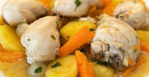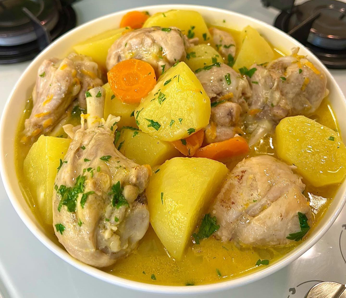 Malzemeler: 1 paket tavuk but 5 adet patates 2 adet havuç 4 diş sarımsak 1 tane soğan 1 yemek kaşığı tereyağ Tuz Karabiber Sıcak su. Terbiyesi için; Yarım limon suyu 1,5 yemek kaşığı un 1 çay bardağı su