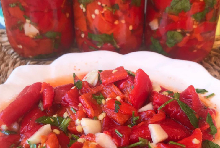 Malzemeler: 5 kg kırmızı salçalık biber ( kapya biber) 3 su bardağı sirke 2 su bardağı sıvıyağ 1 demet sapları ile beraber doğranmış maydanoz 2 baş sarımsak 3 yada 4 yemek kaşığı kaya tuzu 1 tatlı kaşığı toz şeker