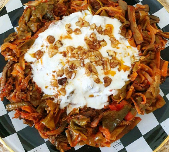 Yapılışı: Biberleri yumuşanakadar haşlayalım ve süzdükten sonta küçük doğrayalım..Tencereye zeytinyağını koyup ince doğradıgımız soganları ekleyelim biraz soteledikten sonra diğer malzemeleri ekleyip en son biberleri ekleyelim, biraz kavuralım.5 10 dakika ocakta tutup altını kapatalım.. Süzme yogurda sarmısak ekleyip salatanın üzerine sıkabilir ya da kasıkkla yayabilirsiniz.