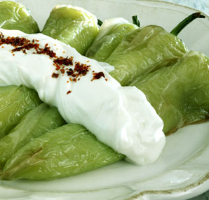 Malzemeler 6 kırmızı ve yeşil kapya biber 2 yumurta 2 kaşık un 1 çay kaşığı tuz Kızartmak için az tereyağı ve Yarım çay bardağı sıvı yağ Yumurtayı doldurmak için kullanılmamış şırınga